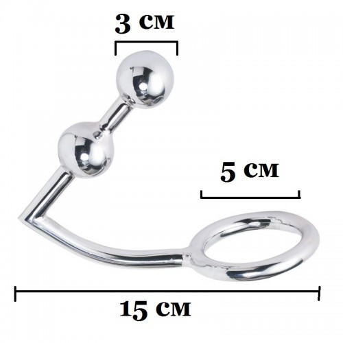 Размеры: общая длина 15 см., длина вводимой части 10 см., диаметр шара 3 см., внутренний диаметр кольца 5 см