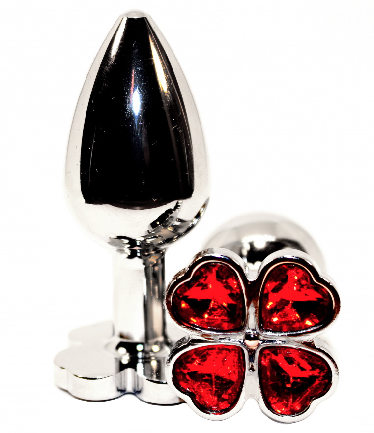 Гладкий маленький серебристая анальная пробочка из отполированной до блеска стали с кристаллом красного цвета!