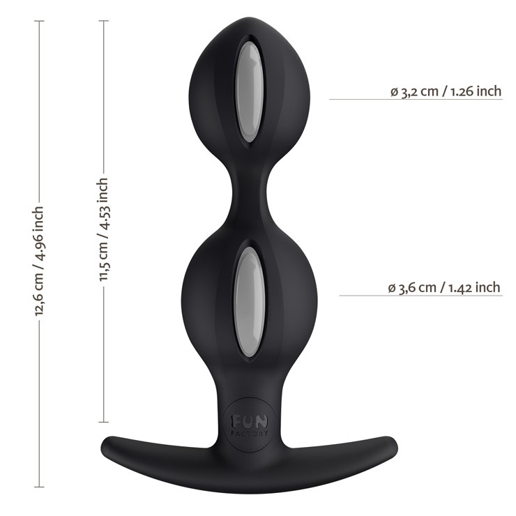 Два утяжеленных шара со смещенным центром тяжести позволят вам наслаждаться необычными ощущениями в отличие от того, что может предложить любая другая анальная пробка!