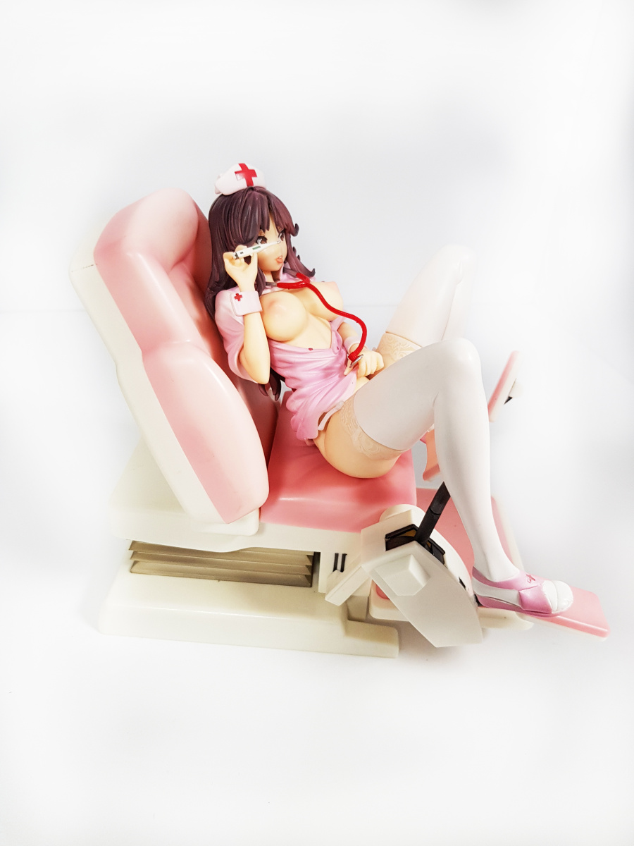 медсестричка, которая сидит в медицинском кресле с раздвинутыми ножками...