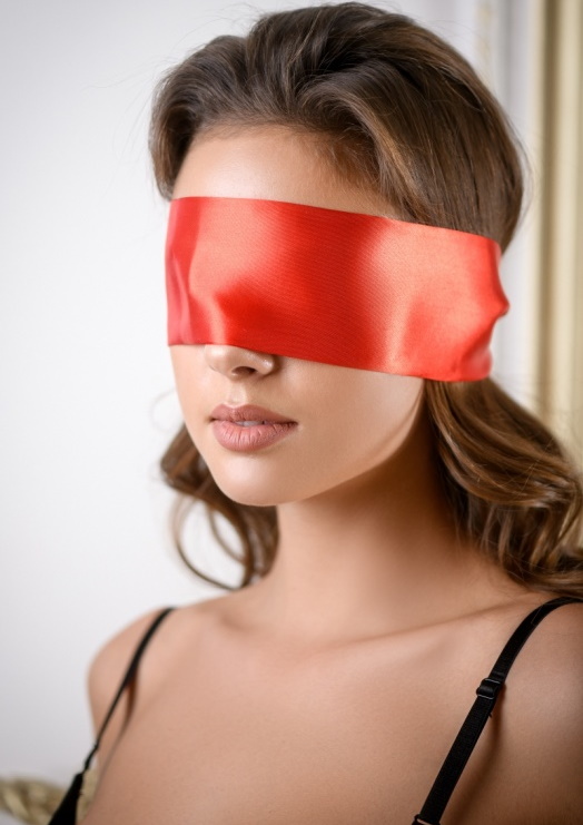 Нежная и волнующая воображение лента для глаз, выполненная из красного атласа.
