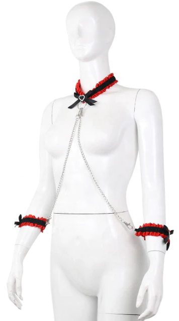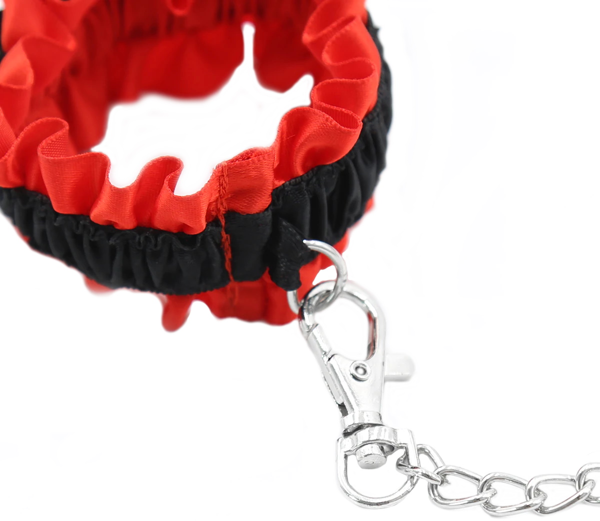 Цепь съемная, поэтому Вы можете использовать браслеты и чокер и как манжеты, что, бесспорно, будет выглядеть весьма эффектно, если Вы решите перевоплотиться в страстную госпожу!