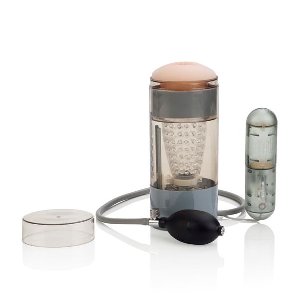 Автоматический мастурбатор состоит из пластиковой колбы, внутри которой находится силиконовая насадка с мягкими шипами, которая скользит по телу пениса, мастурбируя. А также в комплекте насадка-анус из материала SoftTouch и груша для стимуляции пениса воздухом. Груша позволяет насадке кратковременным давлением более плотно облегать пенис. Мастурбатор с выносным пультом, работает от четырех пальчиковых батареек типа АА. (батарейки в комплект не входят).