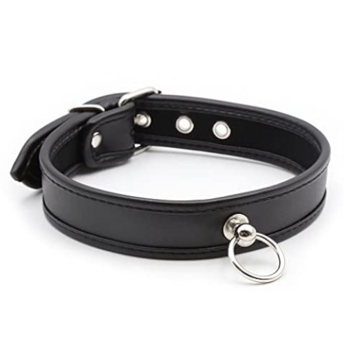 Оригинальный черный ошейник, декорированный кольцом. Крепление в виде застежки.
