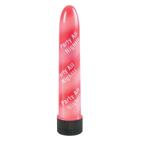 Бело-красный вибратор из пластика с надписью PARTY ALL NIGHT!!