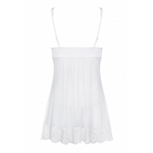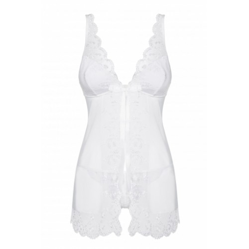 Эта полупрозрачная сорочка - соткана из света. Она – воплощение женственности и сексуальности . Абсолютно любая женщина, выбравшая этот роскошный комплект из сорочки и трусиков почувствует себя эталоном красоты. Ведь быть эталоном красоты – это так просто!
