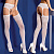 Белые чулочки в мелкую сетку с широкой резинкой и поясом с цветочным рисунком.