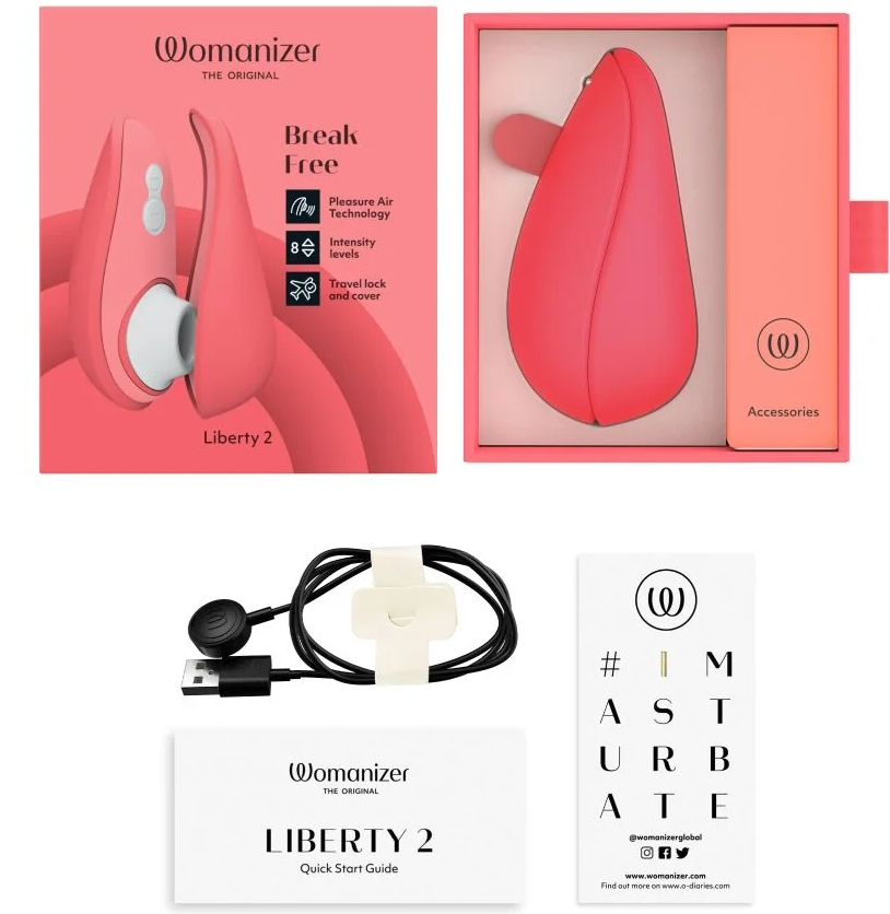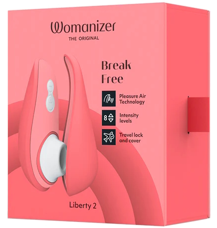 Womanizer Liberty 2 – эргономичный вибростимулятор, воздействующий на главную женскую эрогенную зону при помощи вакуума. Эластичная силиконовая манжетка прикладывается к клитору, а встроенный насос тем временем понижает давление, вызывая интенсивный прилив крови.