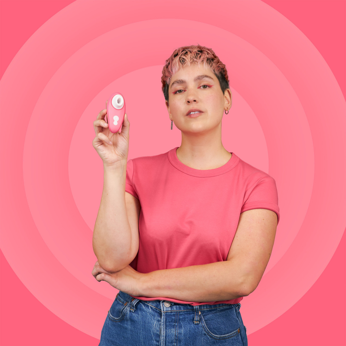 Ни с чем не сравнимые ощущения Womanizer дарит своей обладательнице благодаря тому, что стимуляция происходит бесконтактно: мягкая силиконовая насадка лишь касается области вокруг клитора, в то время как его ласкают пульсирующие вихри потоков воздуха.