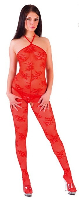 Прекрасное эротическое сетчатое боди с чулками красного