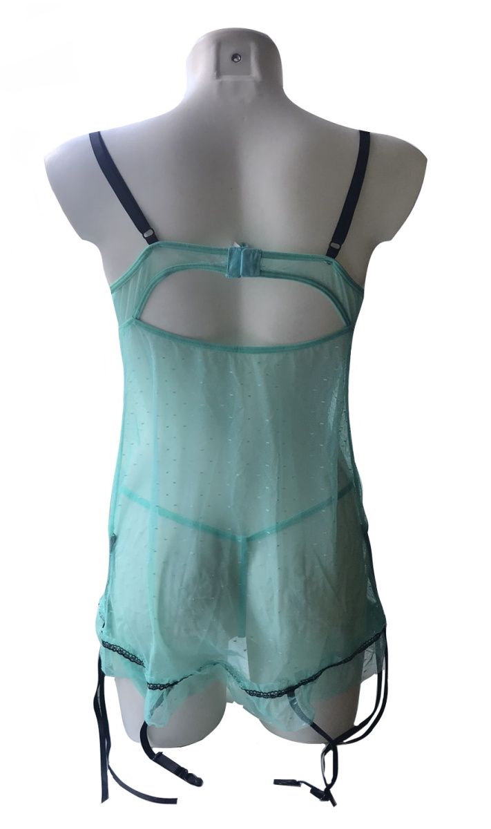 Сзади сорочки имеет застежку, бретели регулируются по размеру, а черные пажи добавят пикантности.