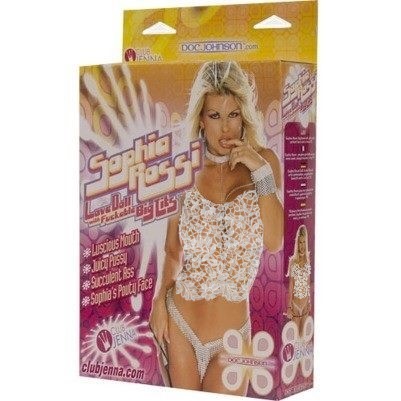 Красотка с напечатанным лицом порнодивы Sophia Rossi имеет три любовных отверстия, а также очень большую грудь.