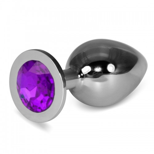 Гладкий большой плаг из отполированной до блеска стали с кристаллом фиолетового цвета в основании.