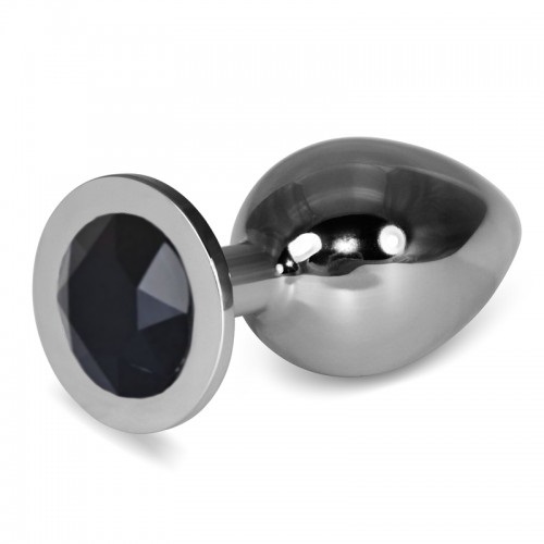 Гладкий большой плаг из отполированной до блеска стали с кристаллом черного цвета в основании.