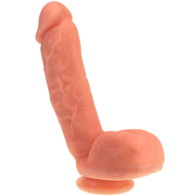 Коническая головка способствует наиболее комфортному проникновению, а имитация мошонки у основания обеспечивает удобный захват и полный контроль, а также служит в качестве естественного барьера при глубоком проникновении и в Ваших любовных играх.