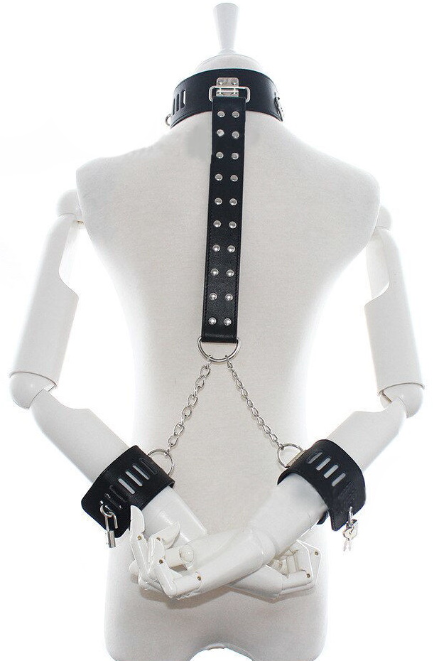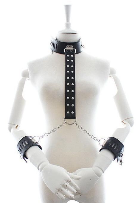 Ошейник совмещен с фиксаторами для рук и прекрасно подойдёт как начинающим, так и опытным практикам субкультуры БДСМ.