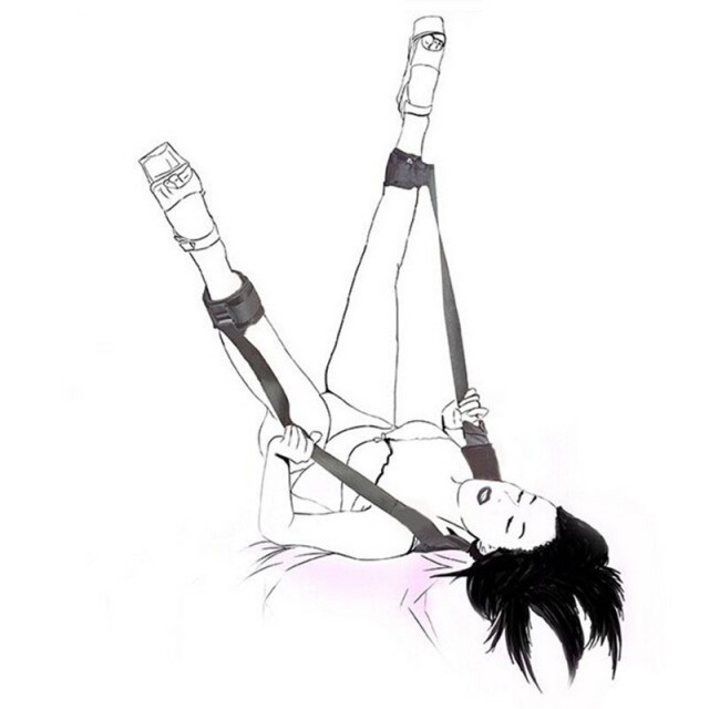 Длинный ремень с петлями для упора стоп, как стремена позволят женщине раскинуть ножки под любым углом!