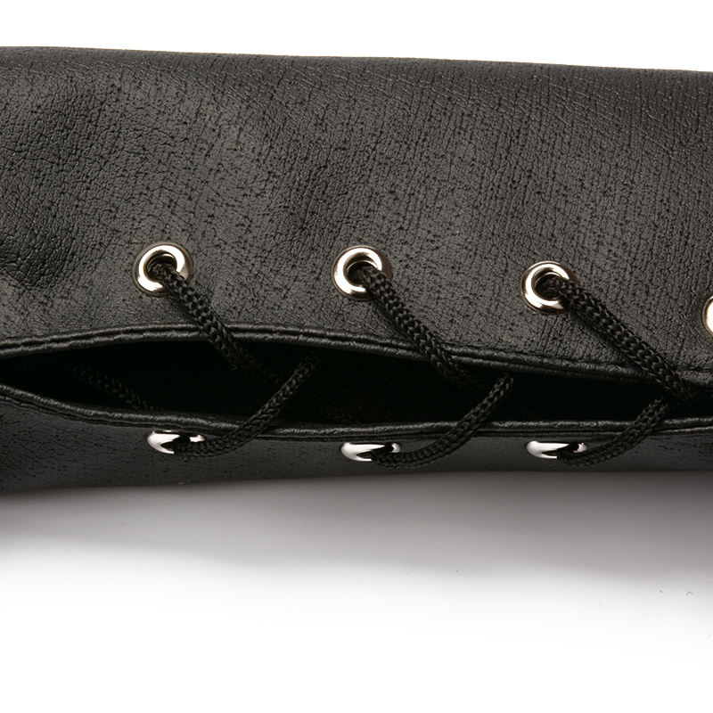 Наручи выполнены из кожи чёрного цвета с подкладочной тканью внутри. Наручи имеют шнуровку и D-образные кольца для фиксации.