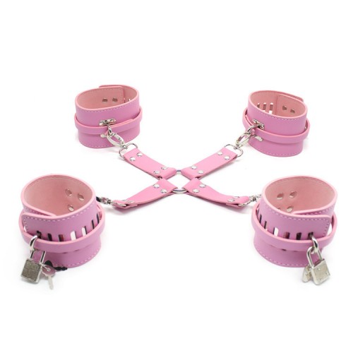 Универсальный фиксатор, состоящий из поножей и наручников, соединенных между собой крестообразной фиксацией, позволит обездвижить Вашего партнера в любой позе!