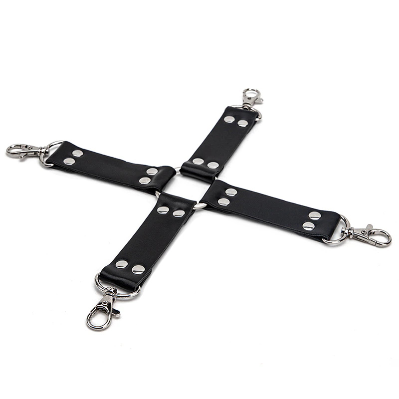 Фиксатор имеет четыре прочных крепления с карабинами, к которым Вы можете легко и быстро пристегнуть наручники и поножи.