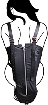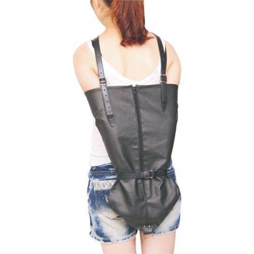 Заплечный бондаж представляет собой большой черный конусообразный рукав с молнией на двух ремнях. Ремни перекрещиваются и одеваются на плечи сабмиссива, а руки вставляются в рукав и застегиваются на молнию!! Полное обездвиживание, полный контроль! Это настолько возбудит Вас и разыграет фантазию, что Вы не захотите его потом снимать!