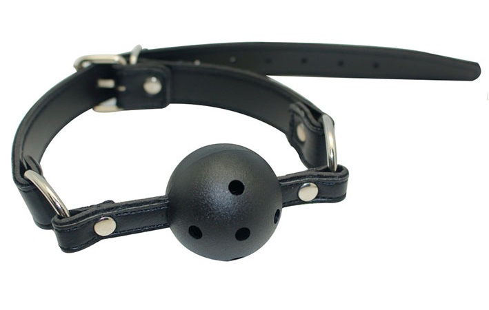 * Кляп из искусственной кожи на застежке и пластмассовым шариком с отверстиями для дыхания – диаметр шарика 4,5 см;
