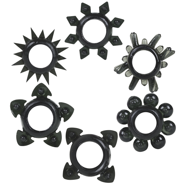 Набор для мужчин из 6 колечек на пенис разной формы. Сделаны из супертянущегося TPR. Хоть угольный набор и для мужчин, но он принесет немало удовольствия и его партнерше! Шипики, усики, шарики - всё это для настоящего женского удовольствия в руках страстного любимого мужчины! Дарите друг другу качественный секс!