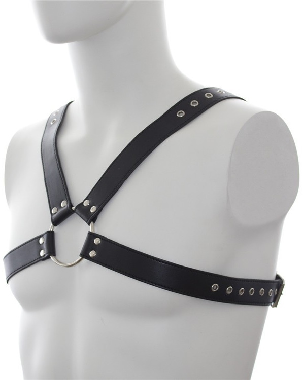 Черная мужская сбруя подчеркнет плечи и грудь мужчины!
