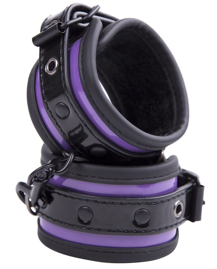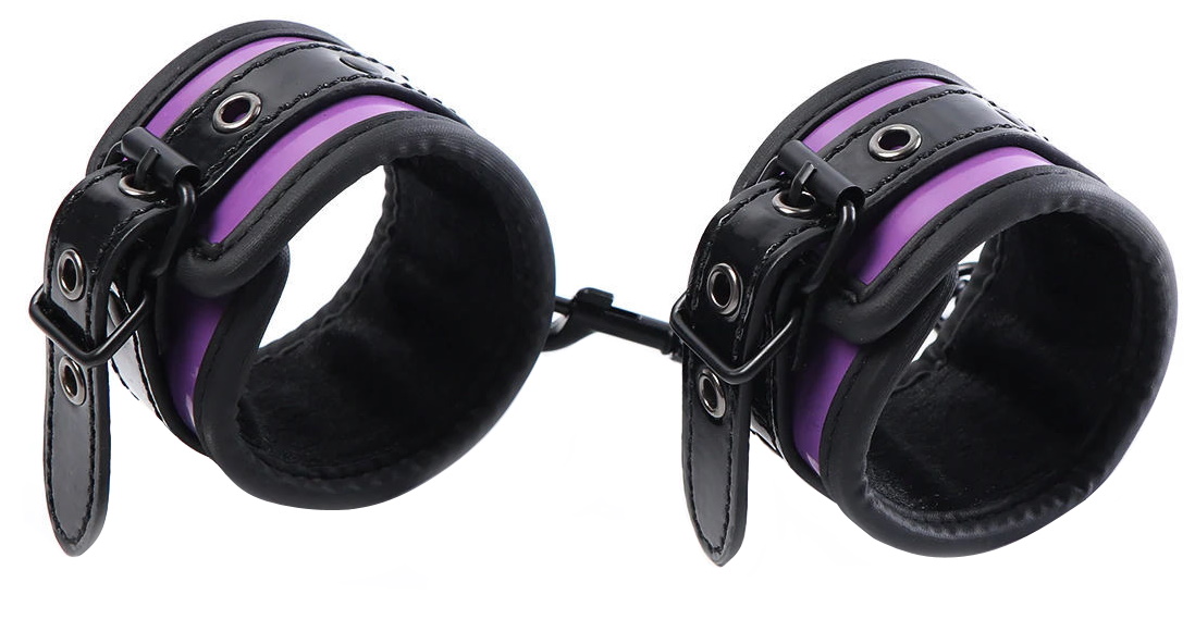 Металлическая фурнитура обеспечивает качественную фиксацию. Наручники соединяются между собой цепью с карабинами, благодаря чему обеспечивается достаточно жесткая сцепка.Размер: по обхвату регулируются от 20 до 26 см, ширина 5 см