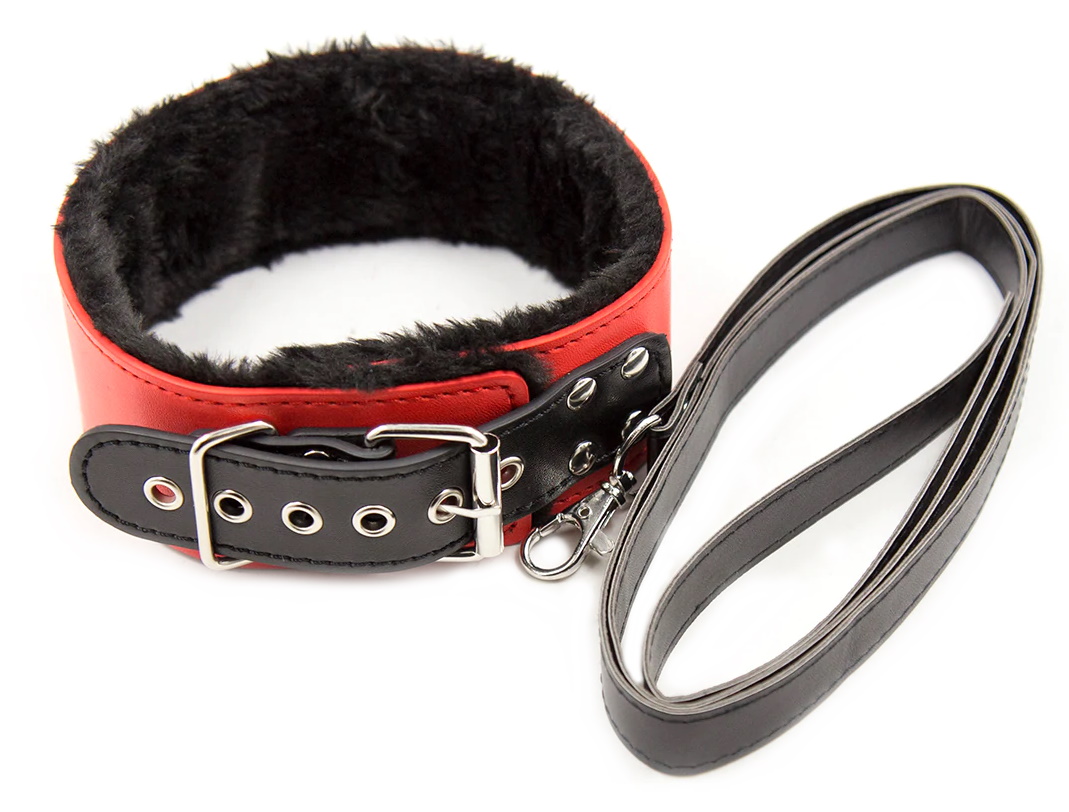 Ошейник с поводком незаменим для БДСМ игры, ведь так покорно выглядит Ваш партнер, когда он закован в ошейник... Аксессуар имеет универсальный размер, который регулируется липучкой.