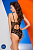 Глубокий V-образный вырез в области декольте декорирован стрепами. Спереди на талии имитация пояска, что визуально стройнит ее, сзади - вырез.