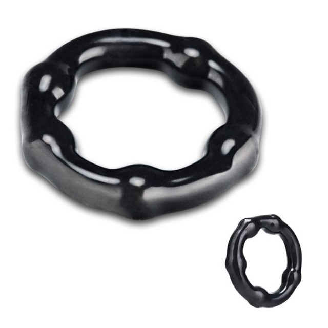 Черное кольцо на пенис из упругого материала, в который вживлены 5 металлических шариков. Именно такое кольцо обеспечивает пролонгирующий эффект и одновременно стимуляцию обоих партнеров.