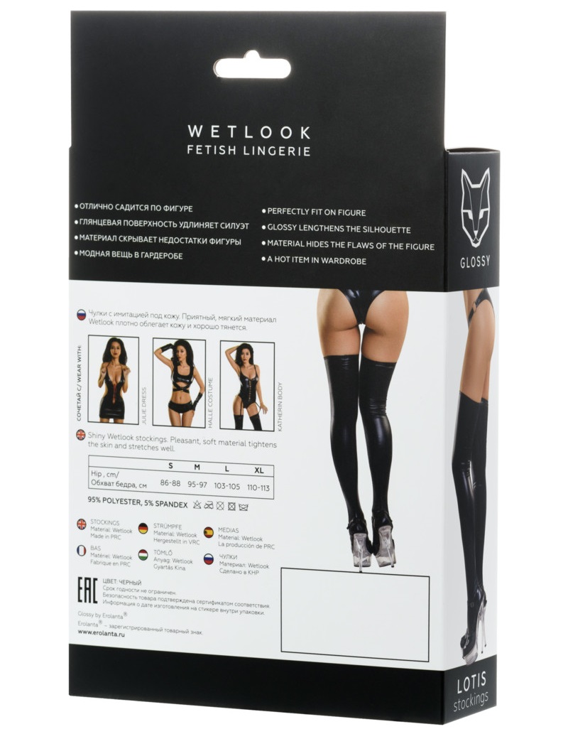 Встречайте сексуальные черные чулочки из блестящего материала с имитацией под кожу!