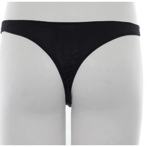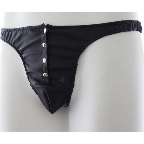 Черные мужские стринги, которые спереди застегиваются на кнопки.
