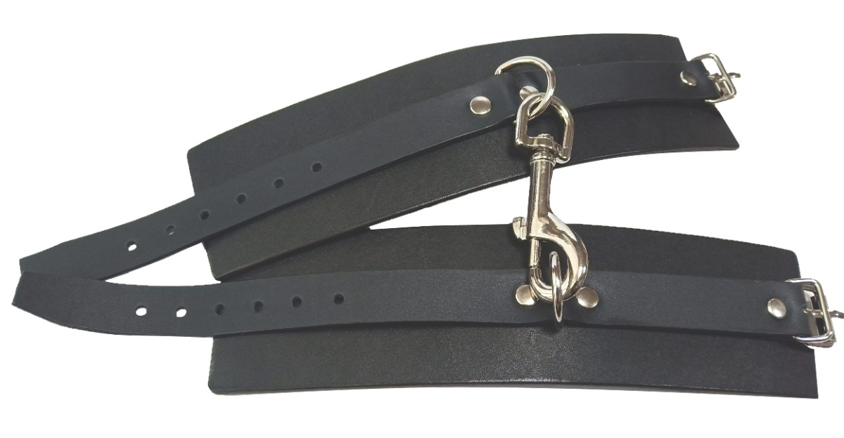 Наручники представляют собой два регулируемых по объему ремешка, скрепленных между собой металлическим карабином.