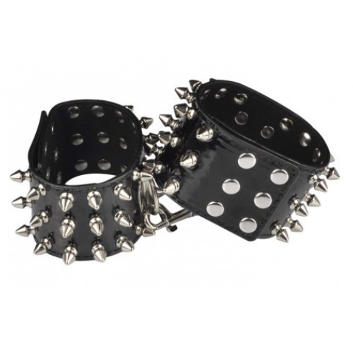 Замечательные черные наручники с шипами крепятся между собой с помощью карабина.
