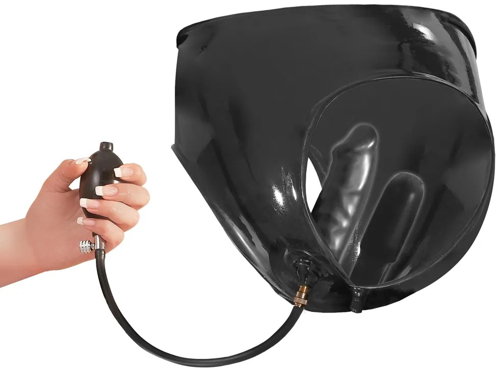 Трусики выполнены из латекса и имеют внутри себя 2 втулки: анальную и вагинальную. В комплекте также идет ручной насос-груша, с помощью которого Вы сможете накачать втулки до оптимального размера.