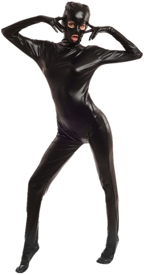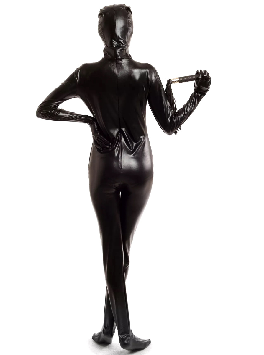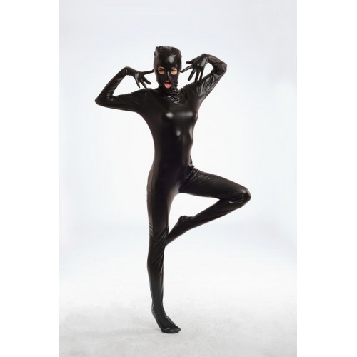 Черный блестящий комбинезон с маской, которая скроет Ваше лицо!