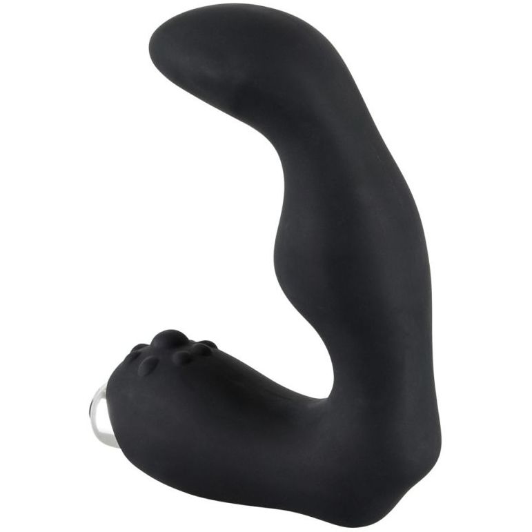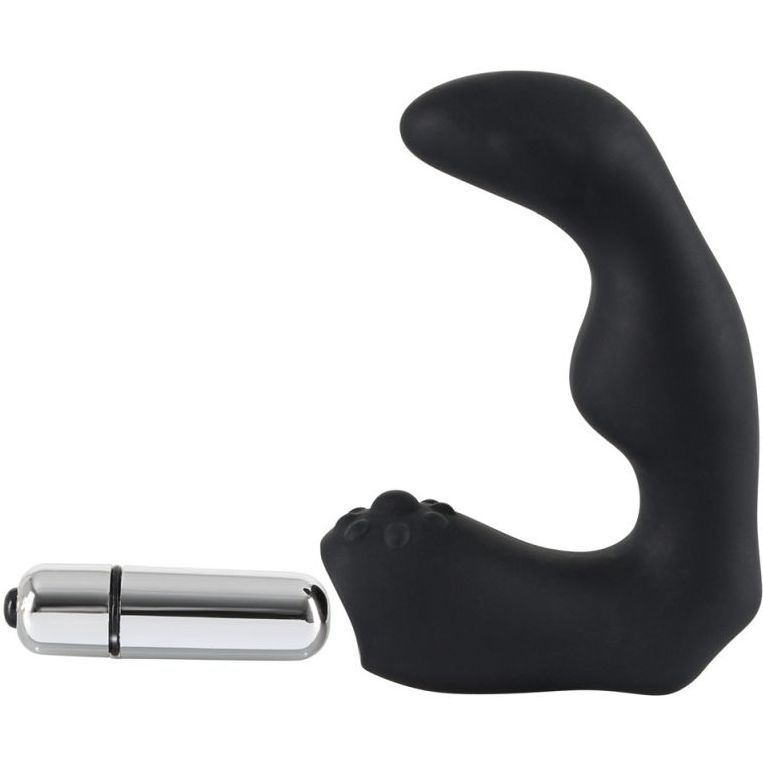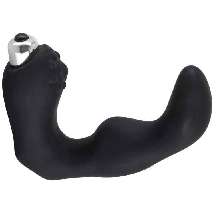 Одна часть игрушки — рельефный стимулятор с загнутой головкой — активно массирует предстательную железу.Вторая часть — массажер для интимной зоны — вызывает множественные оргазмы от стимуляции мошонки.
