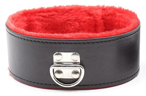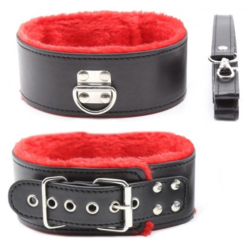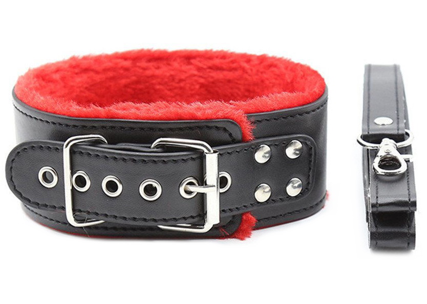 Металлическая фурнитура надежно фиксирует ремешок, а также позволяет отрегулировать размер. Поводок крепится к полукольцу на внешней стороне ошейника - это позволяет раздвинуть грани Ваших БДСМ игр!