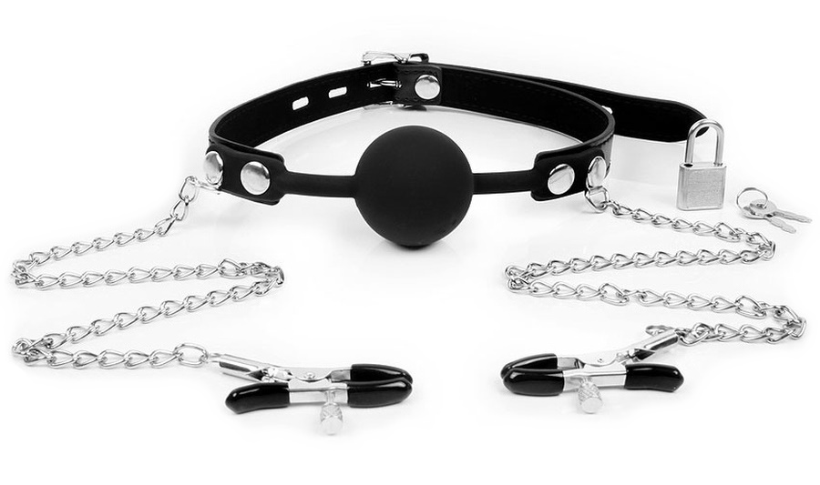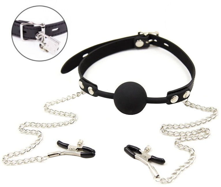 Кляп невозможно выплюнуть, он надежно фиксируется при помощи ремешка, который регулируется с помощью пряжки и фиксируется замочком.