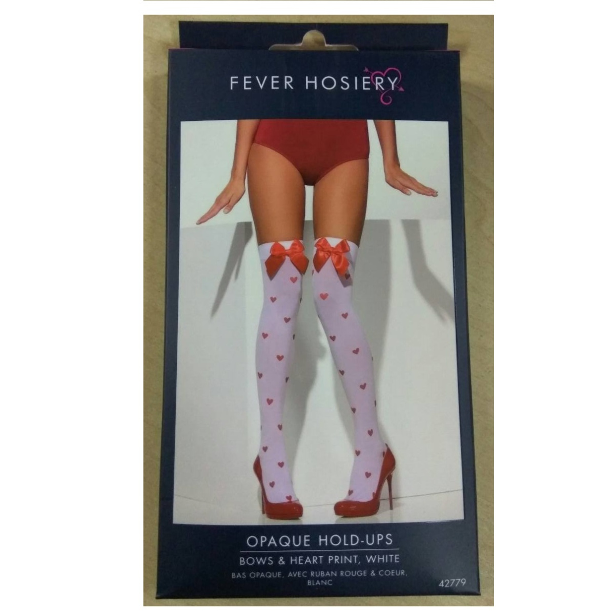 По всей длине чулок красные сердечки.