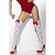 Белые прозрачные чулки с плотной узкой резинкой, украшенной красными бантами.