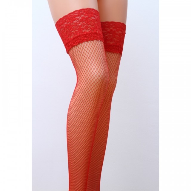 Чулочки красные в мелкую сетку с кружевным верхом.