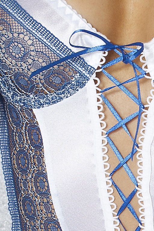 Данная модель от известного польского бренда Passion выполнена из роскошного атласа в сочетании с нежным голубым кружевом. Лиф на косточках прекрасно держит грудь и придает ей соблазнительную форму. Сорочка декорирована шнуровкой спереди по всей длине и рюшами по низу.