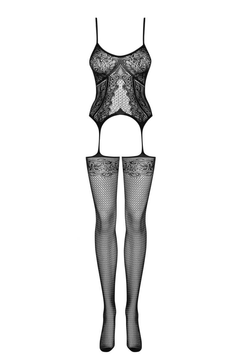 Детали: нижнее белье 2 в 1 - трикотажный топ и чулки, феноменальный сетчатый узор - соблазнительно декорированное боди, полосы на бедрах и ягодицах - пикантное сочетание двух частей наряда, эластичная, нежно ласкающая тело ткань.