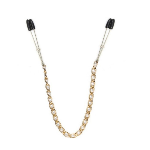 Зажимы изготовлены из прочного металла, сами «прищепки» на кончиках покрыты мягкой резиной для максимального комфорта ощущений. При помощи небольшого регулятора, расположенного на зажимах, Вы сможете регулировать степень жесткости сжатия. Зажимы соединены изящной цепочкой с бусинками, каждое движение которой будет ощутимо стимулировать сосочки, даря вам ни с чем не сравнимое удовольствие!