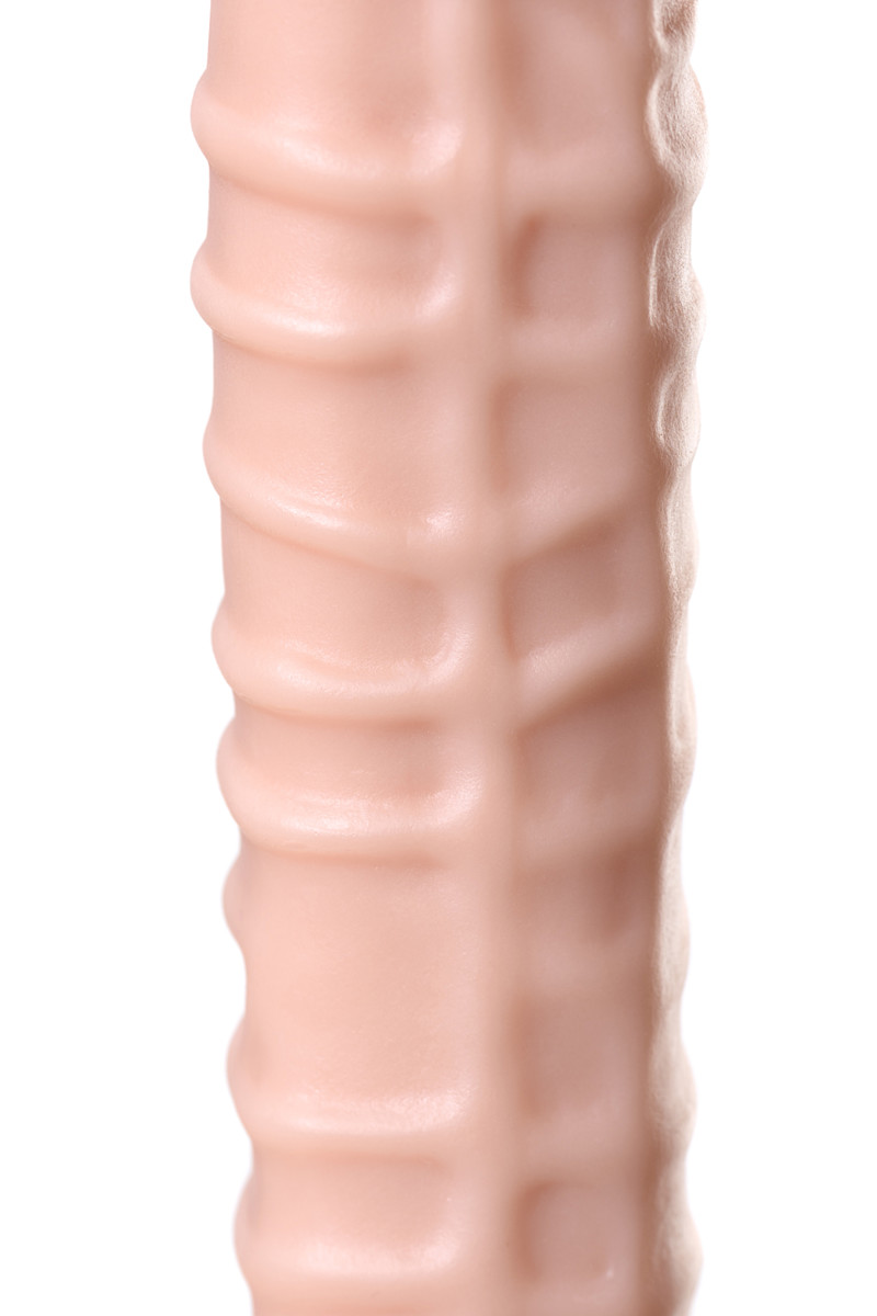 Длинный фаллоимитатор имеет ярко выраженную розовую головку, прорисованные набухшие вены - все это прекрасно подойдет для дополнительной стимуляции влагалища и ануса.