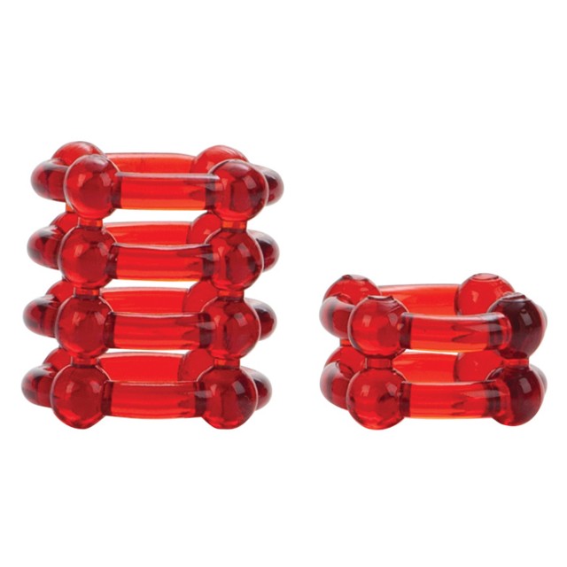 Набор из двух силиконовых колец. Первое кольцо из 2 полос со стимулирующими шариками, а второе кольцо из 4 полосочек с 4 мягкими шариками на каждой. Можете менять кольца в зависимости от вашего сексуального настроения.