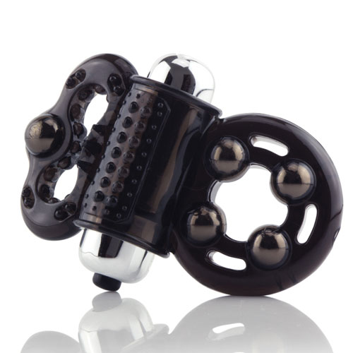 Кольцо имеет двойное крепление - на основание члена и за мошонку - для крепкой эрекции, продления полового акта и дополнительного удовольствия.